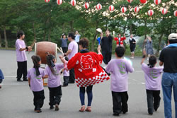 炭坑節に始まり、最後はドラえもんの歌まで計4曲、子どもからお年寄りまで、みんな楽しそうに踊っていました。